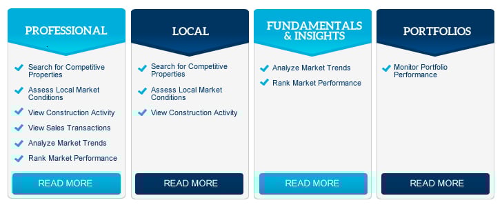 Local includes access to our database of properties and transactions, which are frequently used by owners, operators, developers, lenders, appraisers, brokerage firms and consultants to identify specific market opportunities and local market competition.